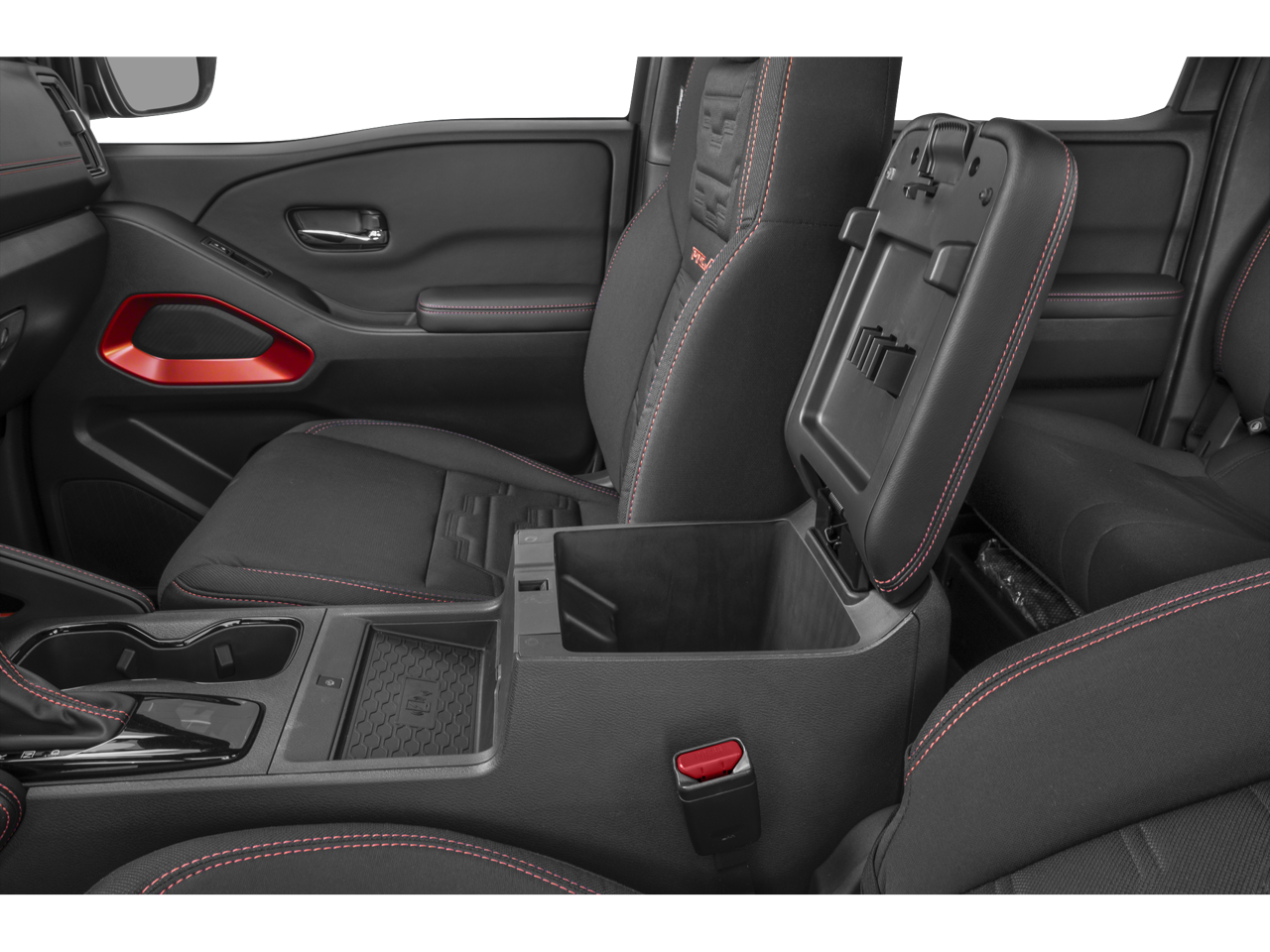 17 Painted Alloy Wheels, 18x7.0 Polished/Painted Alloy wheels, 3.692 Axle Ratio, 4-Wheel Disc Brakes, 6 Speakers, ABS brakes, Air Conditioning, AM/FM radio: SiriusXM, Anti-whiplash front head restraints, Auto High-beam Headlights, Automatic temperature control, Blind Spot Warning, Brake assist, Bumpers: body-color, Delay-off headlights, Driver door bin, Driver vanity mirror, Dual front impact airbags, Dual front side impact airbags, Electronic Stability Control, Electronic Tailgate Lock, Emergency communication system, Essentials Kit, Front anti-roll bar, Front Bucket Seats, Front Center Armrest, Front dual zone A/C, Front fog lights, Front reading lights, Front wheel independent suspension, Fully automatic headlights, Heated Front Bucket Seats, Heated front seats, Heated steering wheel, Illuminated entry, Knee airbag, Leather Seat Trim, Leather steering wheel, Low tire pressure warning, Mud Flaps, Occupant sensing airbag, Off-Road Style Step Rails, Overhead airbag, Overhead console, Panic alarm, Passenger door bin, Passenger vanity mirror, Power door mirrors, Power driver seat, Power passenger seat, Power steering, Power windows, Premium Paint, PRO Embroidered Premium Cloth Seat Trim, PRO Premium Package, PRO-4X Convenience Package, Radio data system, Radio: SXM/AM/FM/AUX/USB Audio System, Rear anti-roll bar, Rear seat center armrest, Rear side impact airbag, Rear step bumper, Remote keyless entry, Security system, Speed control, Speed-sensing steering, Split folding rear seat, Steering wheel mounted audio controls, Tachometer, Telescoping steering wheel, Tilt steering wheel, Traction control, Trip computer, Variably intermittent wipers, Voltmeter, Wireless Apple CarPlay/Wireless Android Auto.