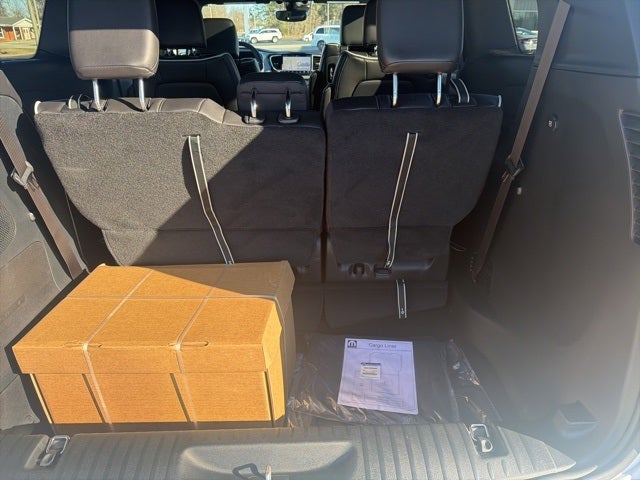 115V Auxiliary Power Outlet, 13 Speakers, 18 x 7.5 Painted Aluminum Wheels, 18x7.0 Polished/Painted Alloy wheels, 19 Harman/Kardon Speakers with Subwoofer, 2nd and 3rd Row Window Shades, 3-Channel Video Remote Control, 3.73 Axle Ratio, 360 Surround View Camera System, 3rd row seats: split-bench, 4-Wheel Disc Brakes, 760 Watt Amplifier, ABS brakes, Air Conditioning, All Weather Cargo Floor Mats, All Weather Floor Mats - Stow 'N Go, AM/FM radio: SiriusXM 360L, Amazon Fire TV Built-in, Apple CarPlay/Android Auto, Audio memory, Auto-dimming Rear-View mirror, Automatic temperature control, AWD Suspension, Black Seats, Blu-Ray/DVD Player/USB Port, Brake assist, Bright Door Sills, Bumpers: body-color, Cargo Area Liner, Compass, Delay-off headlights, Driver door bin, Driver vanity mirror, Driver's Seat Mounted Armrest, Dual front impact airbags, Dual front side impact airbags, Electronic Stability Control, Emergency communication system: Chrysler Connect, FamCAM Interior Camera, Four wheel independent suspension, Front anti-roll bar, Front Bucket Seats, Front dual zone A/C, Front fog lights, Front reading lights, Fully automatic headlights, Garage door transmitter, Gloss Black Exterior Mirrors, Hands Free Sliding Doors, Heated door mirrors, Heated front seats, Heated rear seats, Heated steering wheel, High Definition Multimedia Interface, Illuminated entry, Integrated Active Noise Cancellation, Knee airbag, Low tire pressure warning, Memory seat, MOPAR Interior Protection Package C, MyFlexCare Service Plan, Nappa Leather Bucket Seats, Navigation System, Occupant sensing airbag, Outside temperature display, Overhead airbag, Overhead console, Panic alarm, ParkSense Front/Rear Park Assist with Stop, ParkView Rear Back-Up Camera, Passenger door bin, Passenger seat mounted armrest, Passenger vanity mirror, Power door mirrors, Power driver seat, Power Liftgate, Power moonroof, Power passenger seat, Power steering, Power windows, Quick Order Package 27P, Radio data system, Radio: Uconnect 5 Nav with 10.1 Display, Rain sensing wipers, Rear air conditioning, Rear Cargo Bin Stow 'N Go Storage, Rear reading lights, Rear window defroster, Rear window wiper, Reclining 3rd row seat, Remote keyless entry, Roof rack, Safety Sphere, Seatback Video Screens, Security system, Speed control, Split folding rear seat, Spoiler, Steering wheel mounted audio controls, Stow N Vac Integrated Vacuum, Tachometer, Telescoping steering wheel, Tilt steering wheel, Traction control, Trip computer, Turn signal indicator mirrors, Uconnect Theater Family Group, Variably intermittent wipers, Ventilated front seats, Video USB Port, Voltmeter.