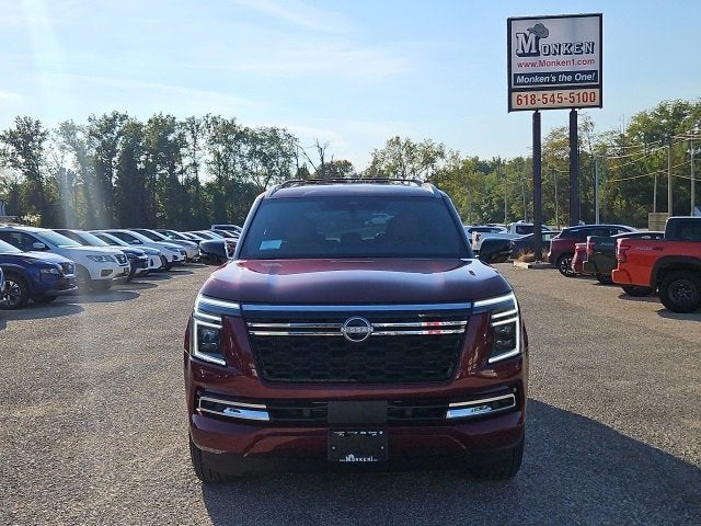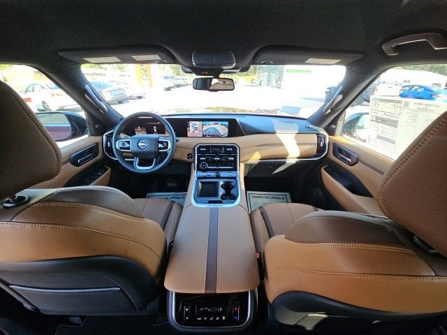 12 Speakers, 18x7.0 Polished/Painted Alloy wheels, 3rd row seats: split-bench, 4-Wheel Disc Brakes, ABS brakes, Air Conditioning, AM/FM radio: SiriusXM w/360L, Anti-whiplash front head restraints, Apple CarPlay/Android Auto, Auto High-beam Headlights, Auto tilt-away steering wheel, Auto-dimming door mirrors, Auto-dimming Rear-View mirror, Auto-leveling suspension, Automatic temperature control, Brake assist, Bumpers: body-color, Center Front Spoiler, Compass, Convenience Package, Cross Bars, Delay-off headlights, Driver door bin, Driver vanity mirror, Dual front impact airbags, Dual front side impact airbags, Electronic Stability Control, Emergency communication system: NissanConnect Services, External Ground Lighting, Four wheel independent suspension, Front anti-roll bar, Front Bucket Seats, Front Center Armrest, Front dual zone A/C, Front reading lights, Fully automatic headlights, Garage door transmitter: myQ Connected Garage, Genuine wood dashboard insert, Heated door mirrors, Heated Front Bucket Seats, Heated front seats, Heated steering wheel, HVAC memory, Illuminated entry, Knee airbag, Leather steering wheel, Low tire pressure warning, Memory seat, Navigation system: Google Maps, Occupant sensing airbag, Outside temperature display, Overhead airbag, Overhead console, Panic alarm, Passenger door bin, Passenger vanity mirror, Power door mirrors, Power driver seat, Power Liftgate, Power passenger seat, Power steering, Power windows, Premium Paint, Rain sensing wipers, Rear air conditioning, Rear anti-roll bar, Rear reading lights, Rear seat center armrest, Rear window defroster, Rear window wiper, Reclining 3rd row seat, Remote keyless entry, Security system, Speed control, Speed-sensing steering, Speed-Sensitive Wipers, Splash Guards, Split folding rear seat, Spoiler, Steering wheel memory, Steering wheel mounted audio controls, Tachometer, TailorFit Seat Trim, Telescoping steering wheel, Tilt steering wheel, Traction control, Trip computer, Turn signal indicator mirrors, Variably intermittent wipers, Voltmeter.